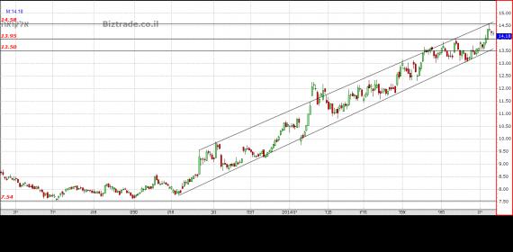 התמיכה הטובה באזור היא ב 13$, כך שכול עוד המחיר מעלייה = בדרך ל 16.