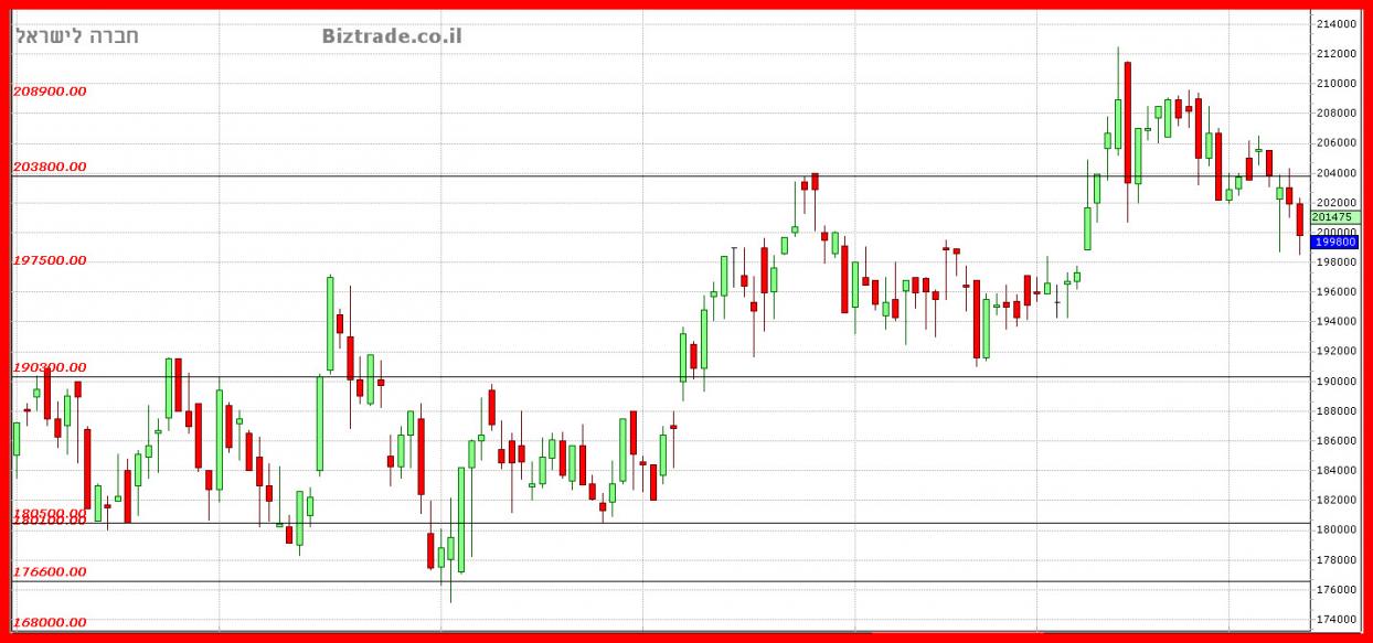 הגרף סוגר את השבוע מאוד חלש , כאשר הוא מגיע ל 190200.