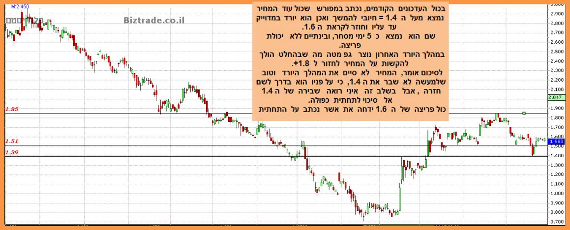 קו 1.8 דולר נפרץ,אך במחזור חלש ......ציפיתי לעוצמה חזקה יותר........