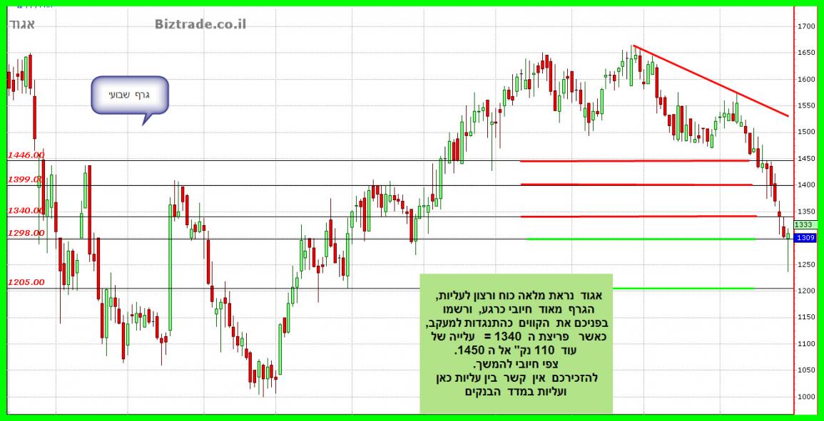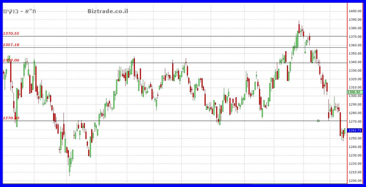 במידה והירידות במגזר הבנקים תימשכנה, אזי התמיכה הטובה כאן אחרי ה 1300 = 1200.