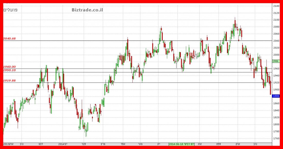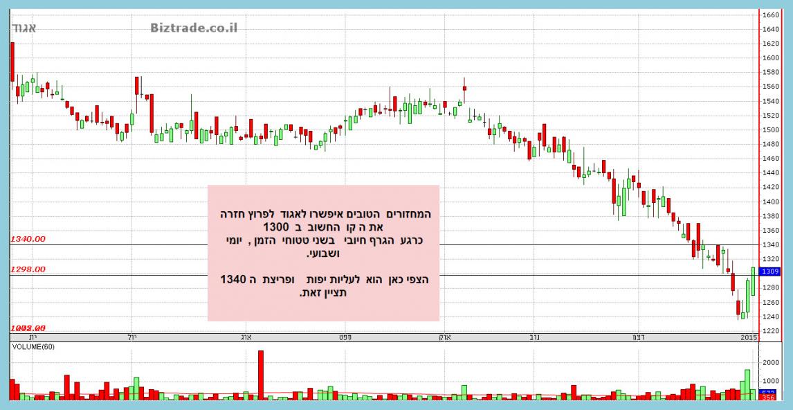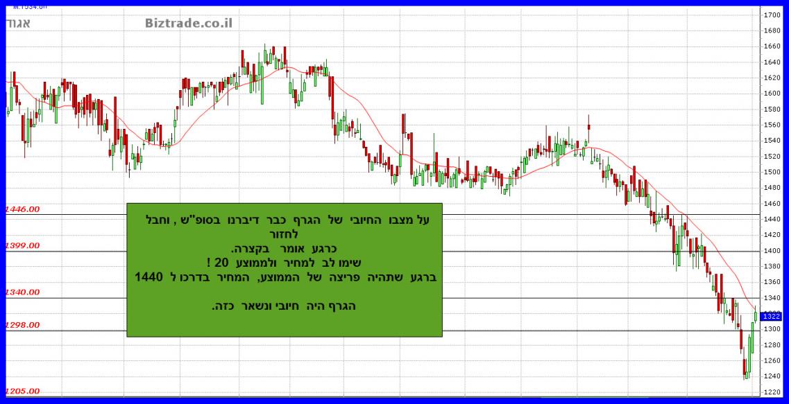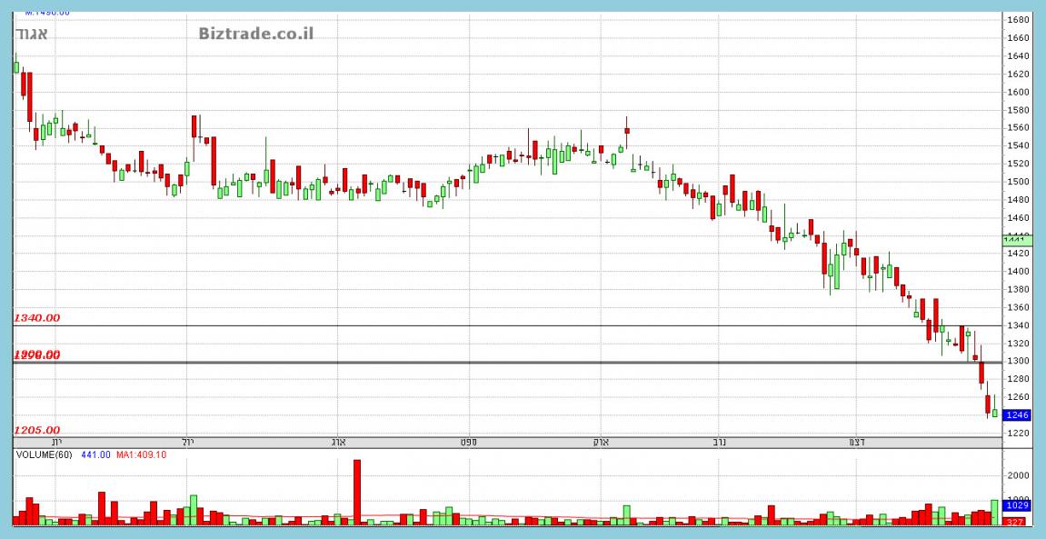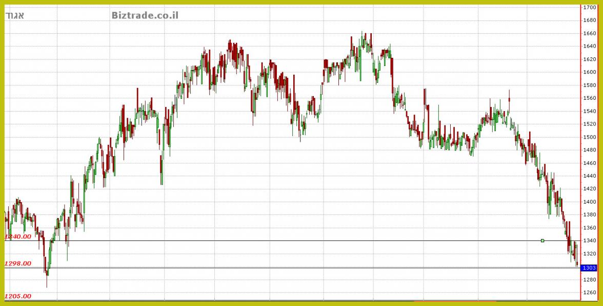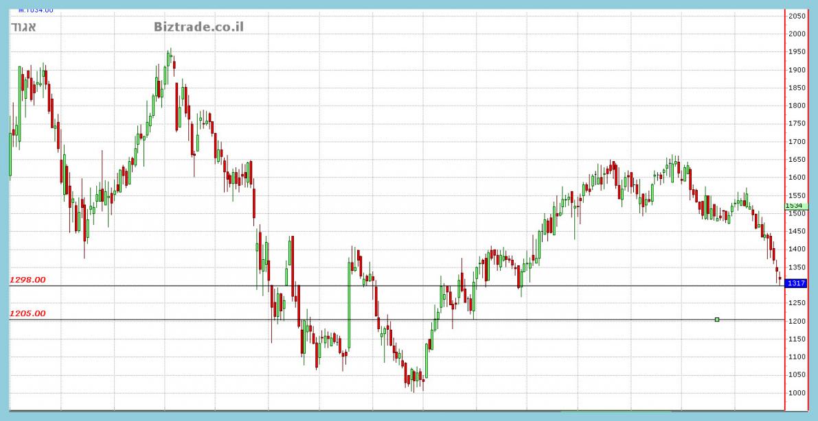 שלא נמצא בתוך מניות מדד הבנקים , ולפני 3 ימי מסחר המחיר שובר את קו ה 1300 , ויורד לנמוך ב 1235.