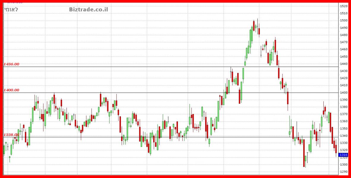 המחיר שובר השבוע תמיכה נוספת ב 1340 וממשיך את הירידות לקראת ה 1300,