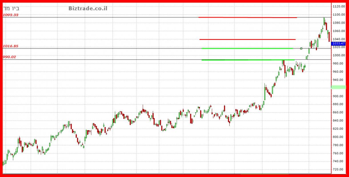 ישנם 3 מקומות לעצירה בינתיים בגרף, והם 1016 - 1000 - 990 , אבל במידה וממוצע 20 יפרץ חזרה כרי ה 1040 , אזי המחיר יוכל לחזור לתקרה כפולה ולא לפריצה של הגבוה.