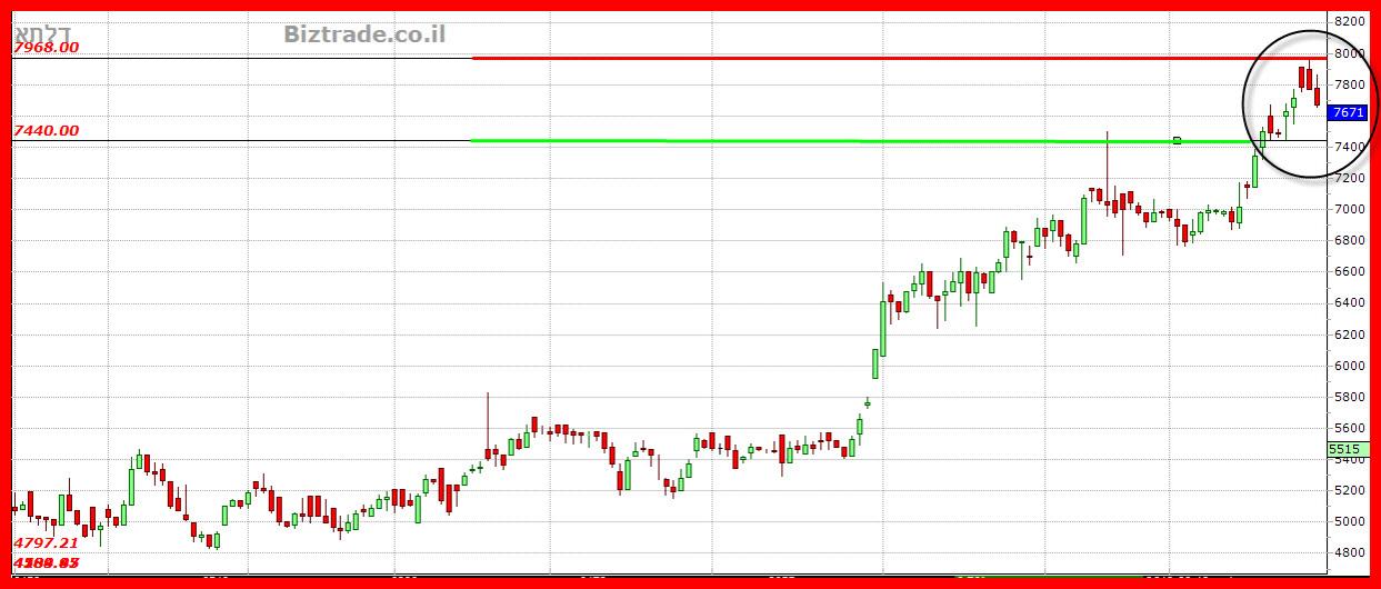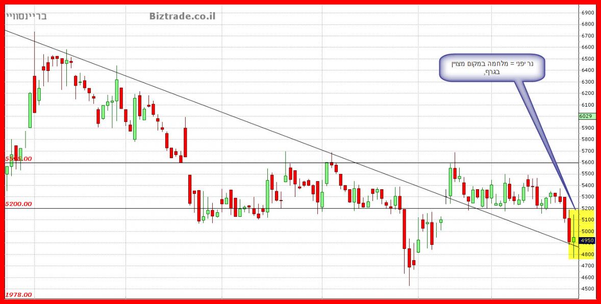 הנר היומי אתמול כבר פרץ בתוך יומי את ה 5000 - 5100 , ושוב לפחות הקונים היו מוכנים לשלם מחירים עולים, ונכון הוא שהמוכרים עדיין מתנגדים !