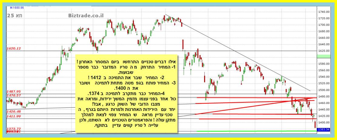 המקרה של שבירה הוא לא כזה פשוט כי תא" על דעת עצמה לא תעשה זאת לבדה ולכן כאשר אתה אומר יעדים לשבירה זה כולל את מדדי העולם כאשר אצל ה אס אנד פי אנו כבר יודעים שזה יהיה 80 נק" מטה ל 1800. וכבר עדכנתי על כך,