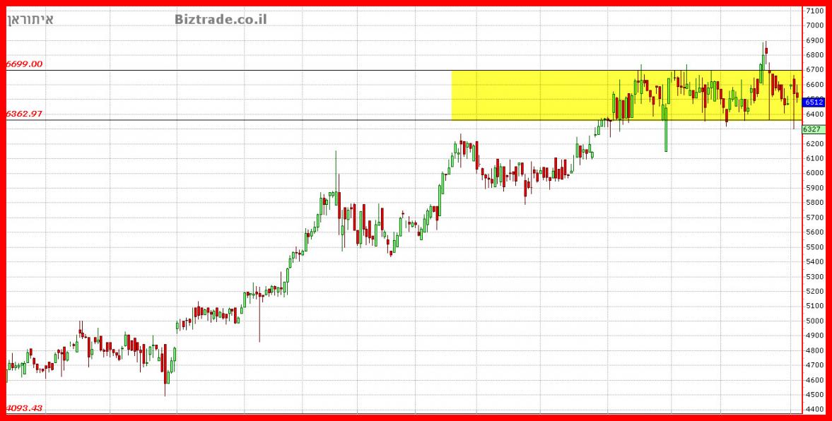 המחיר תקוע במצב דשדוש, בטווחים שבין 6360 - 6700.