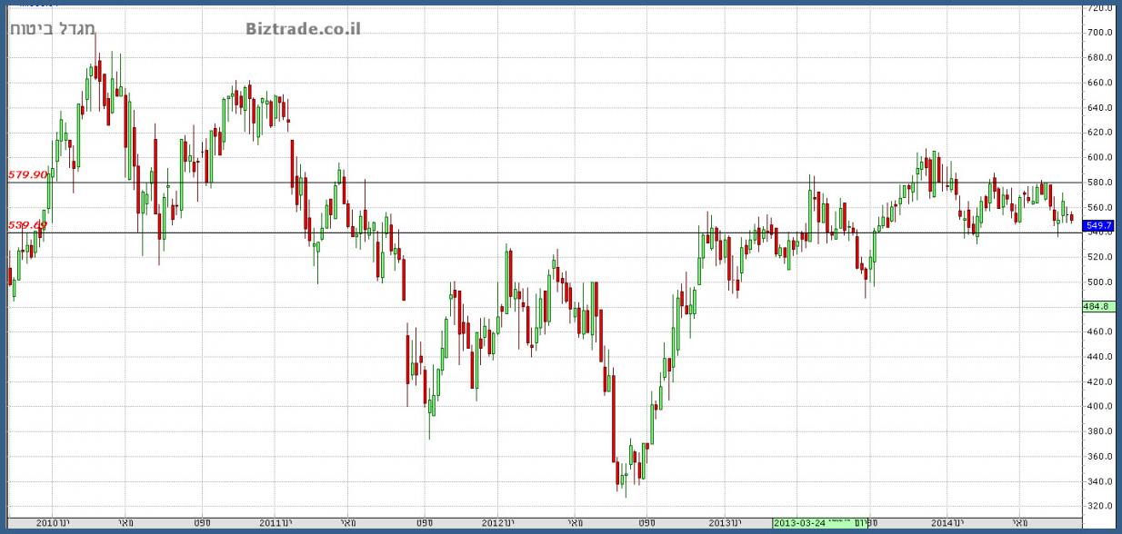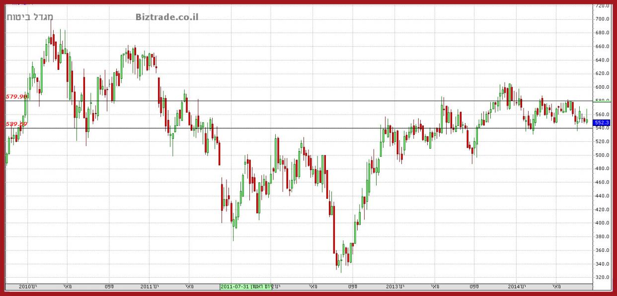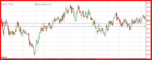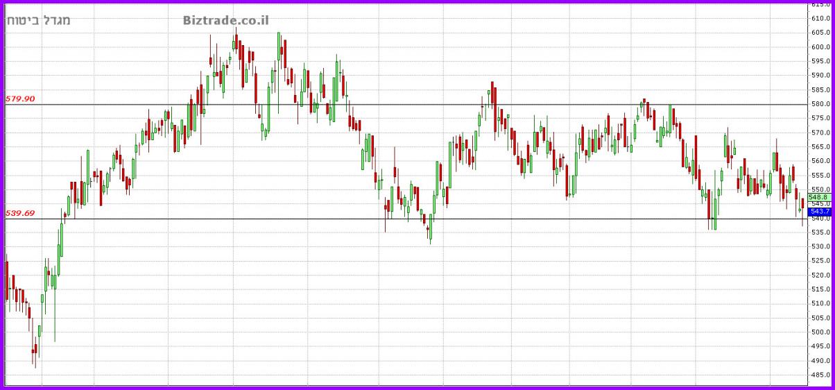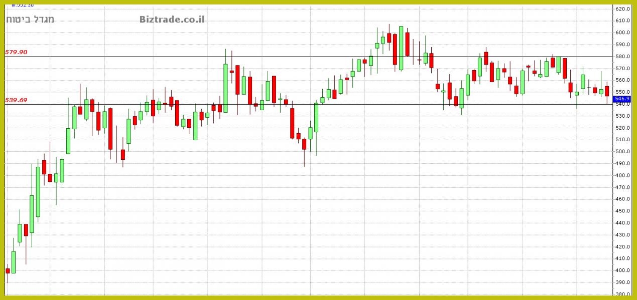 ובהם המחיר נמצא מדשדש בטווחים שבין 540 -- 580,