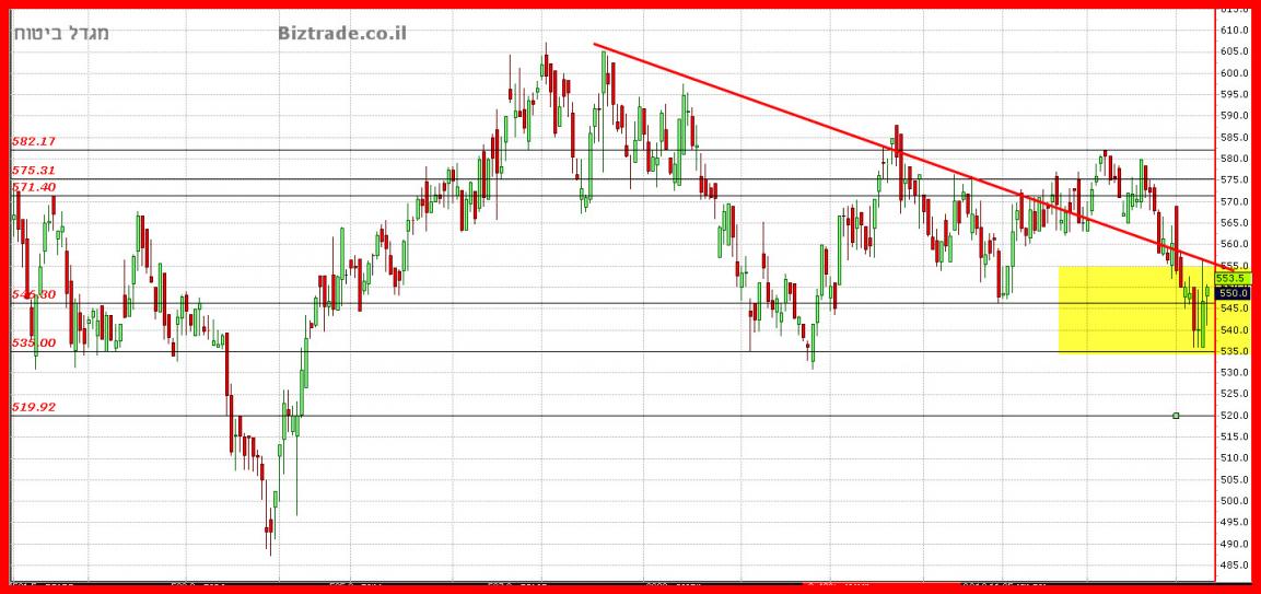 מאחר והמחיר שבר את קו המגמה היורד ב 558, הוא נסחר באופן חלש , כאשר קו זה כבר נבדק פעם אחד השבוע.