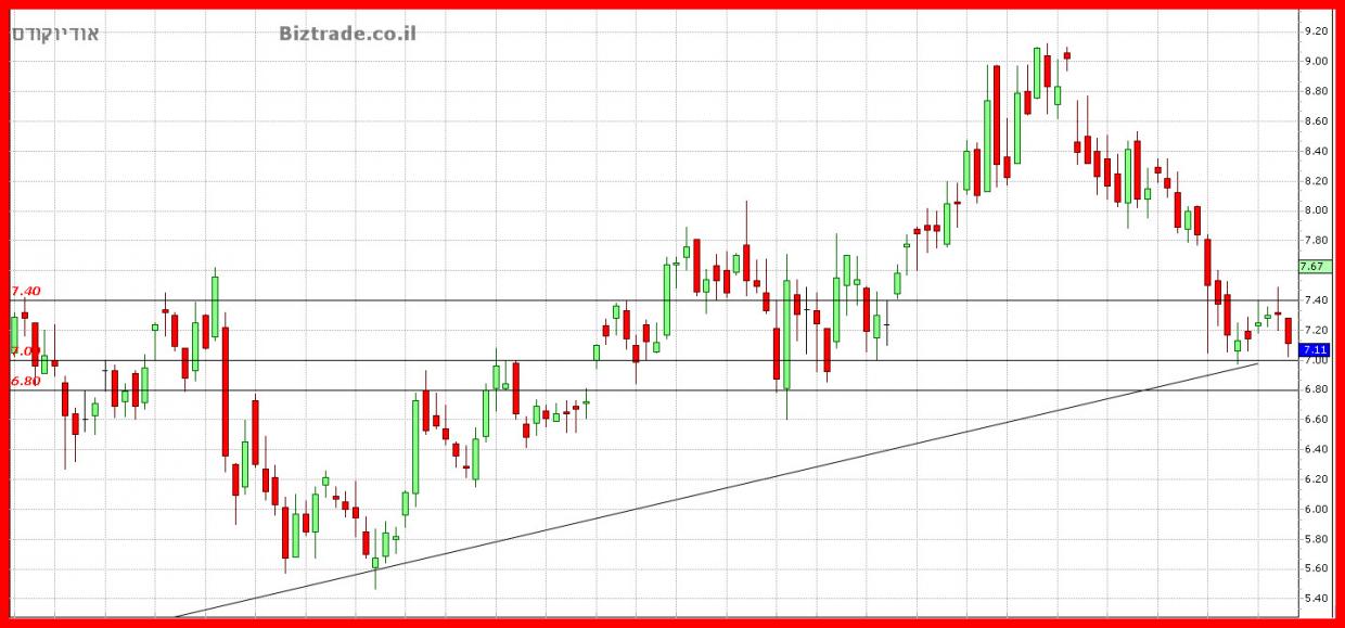 ללא פריצת ה 7.4$, אין עליות ויכולה להיות המשכיות לירידות., על כן קו זה מאוד חשוב לטווח הקצר כפי שכבר נכתב..