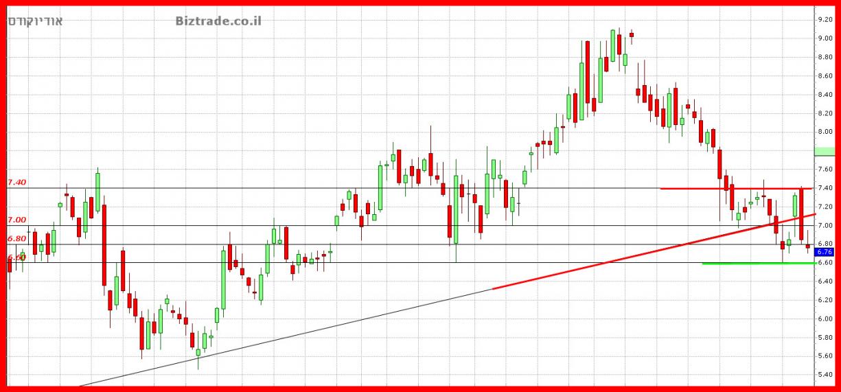 חולשת הגרף עדיין מופיעה, ואתמול בתוך יומי המחיר יורד מה קו החשוב ב6.6$ אבל מיד חוזר מעליו, בהמשך היום.