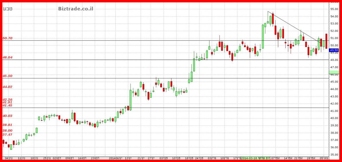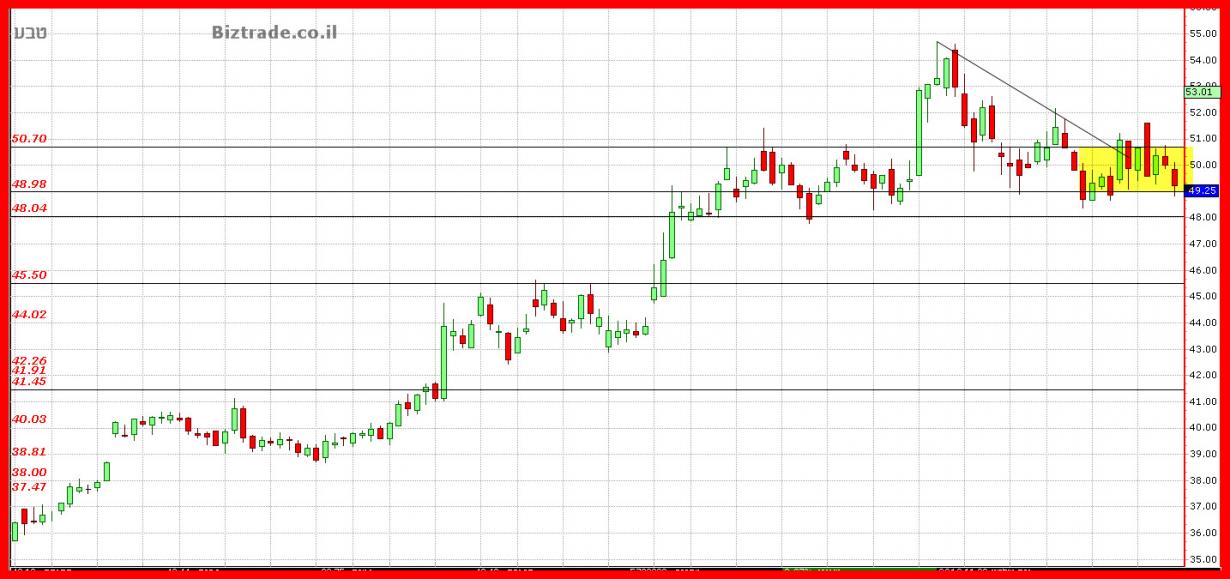 המחיר נשאר בתחום הדשדוש שבין 50.7$ , 49$.