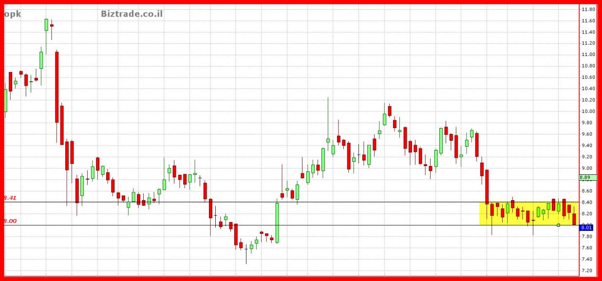 חוסר יכולת הפריצה של ה 8.4$ כקו חשוב באזור , יחד עם ירידות לקראת קו ה 8$, משאיר את הגרף במגמת דשדוש, אבל עם סכנת שבירת ה 8$.