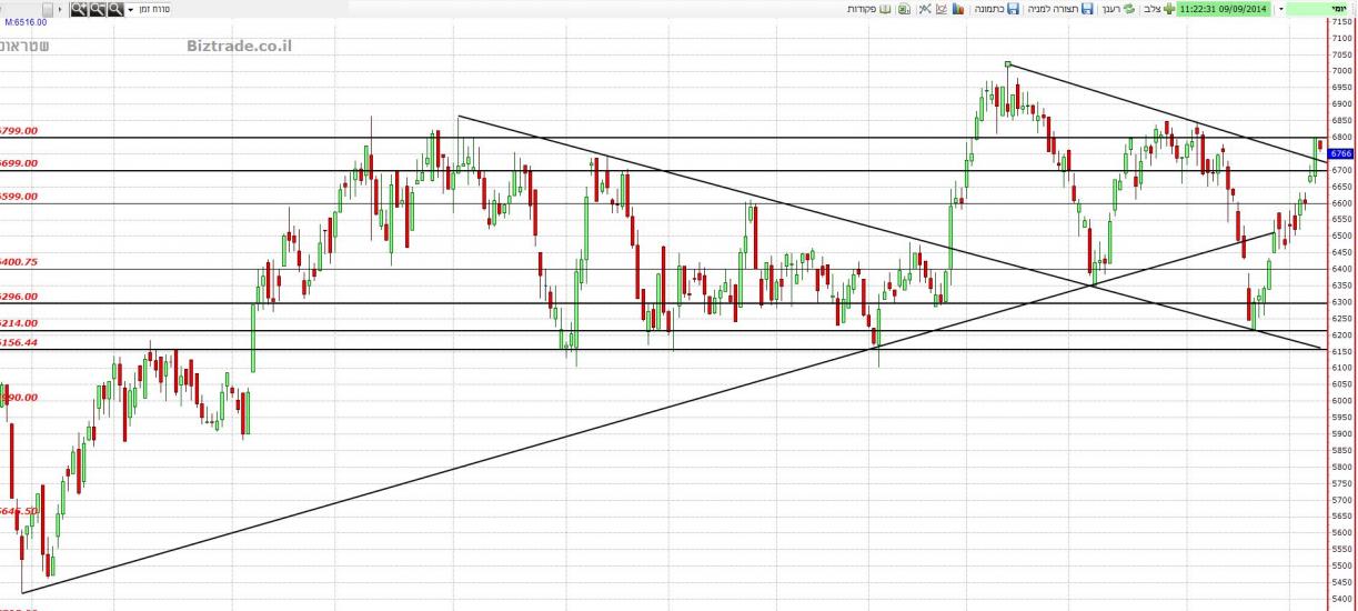 והגענו בדיוק עד 6800, הגרף השבועי מאפשר פריצתו, היומי כצפוי די במכירות יתר