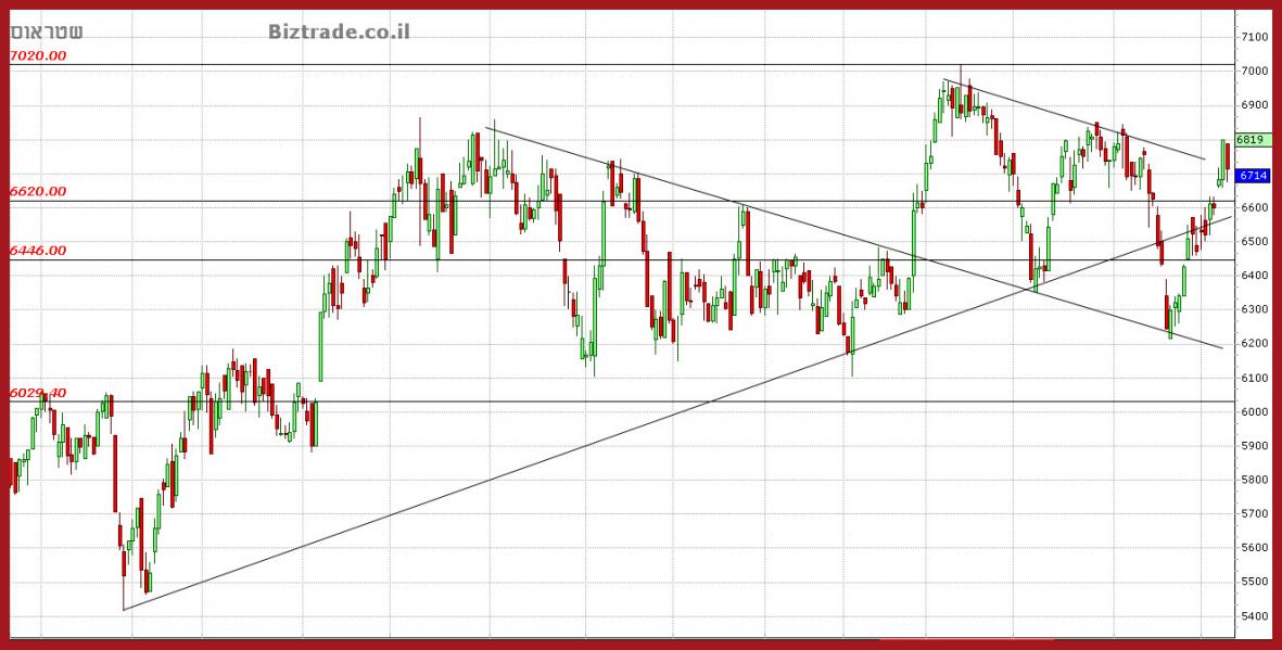 באם פורץ את ה 6800 = המשך עליות, כאשר על הדרך כול מימוש ועצירה ב 6600 יחשב כתקני וטוב להמשך.