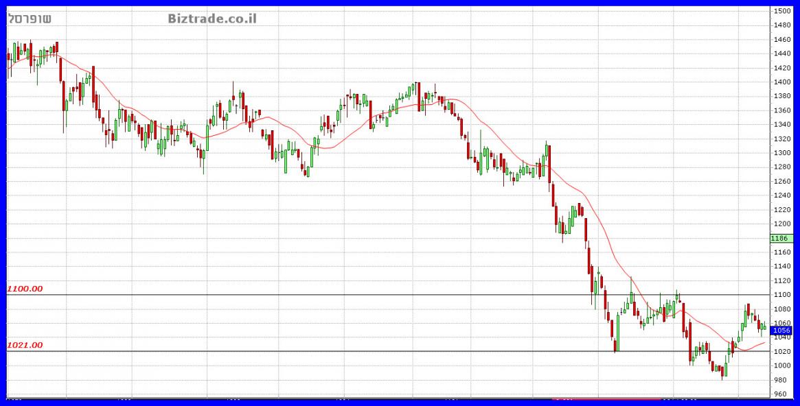המחיר לא מצליח להחזיק גם מעל ממוצע 20 , לאחר ששוב לא הצליח לפרוץ את ה1100.