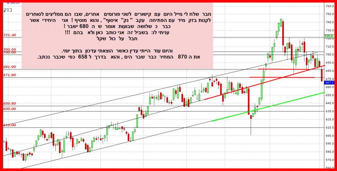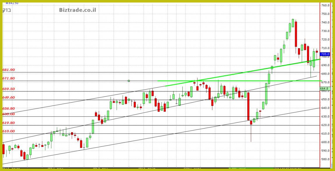 אתמול כבר ניסו לשבור את ה 700 אבל הקונים חזרו ומהר , והיום ניסיון זה ממשיך, כאשר כתבתי מראש , ש שבירה כאן הוא צפי טכני.