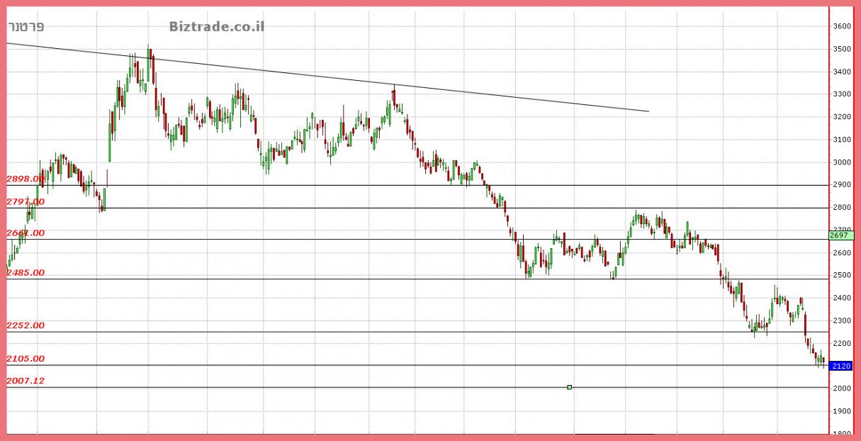 המחיר נמצא כ 4 ימי מסחר סביב ה 2100 , ושם מנסה לבלום , להיתמך או כול דבר אחר רק לא לרדת יותר.