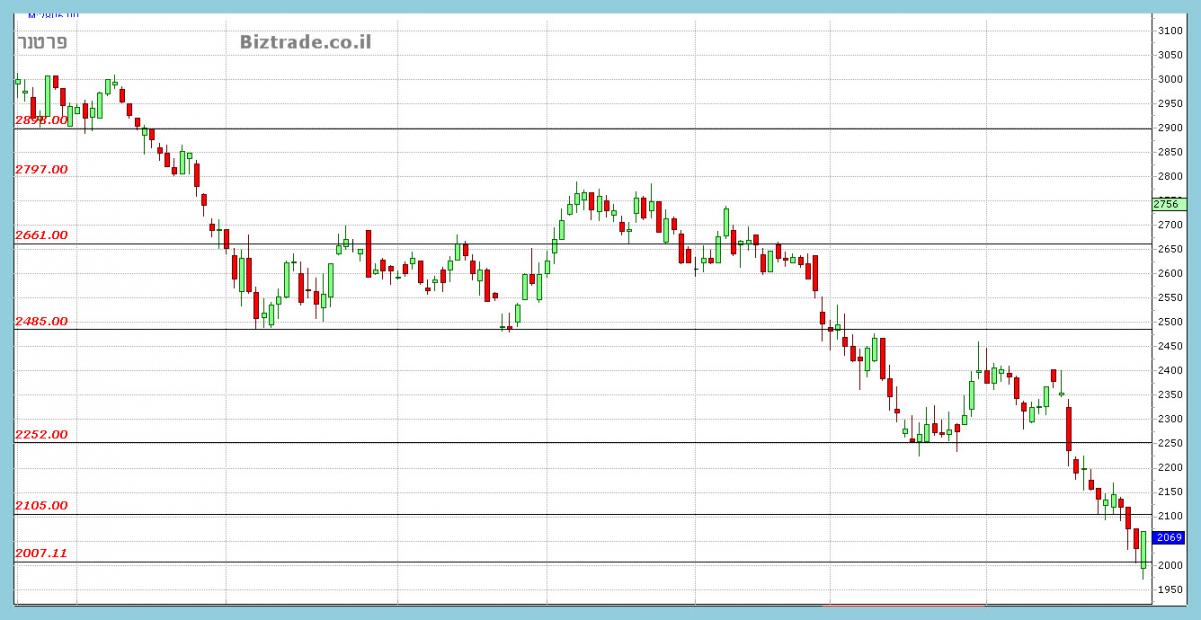 המחיר יורד היום מקו ה 2000 בתוך יומי, עם ירידות של מעל 3% , ורק אז הקונים מתחילים להיכנס.