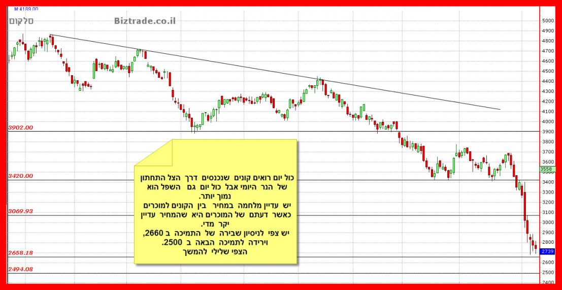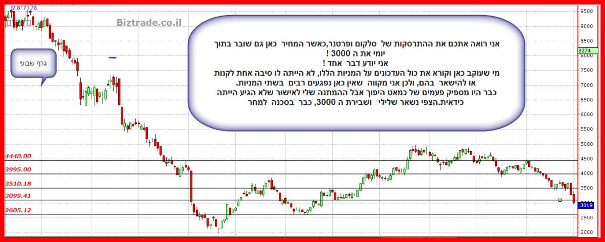 בכדי שיקרה כאן משהו חיובי בגרף על המחיר לפרוץ את ה 3400 ולסגור בו או מעליו, וכול עוד זה לא יקרה , העדיפות של הגרף היא המשך ירידות.