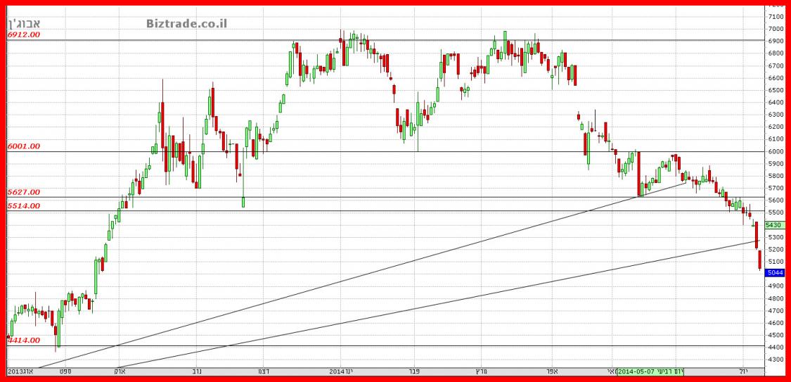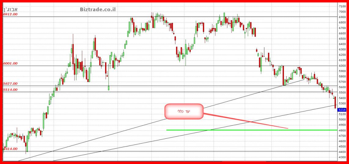 כבר כתבתי ששבירת ה 5630 יוביל לירידות חדות כאשר יעד טכני כללי אפשרי הוא 4800 ואתמול המחיר סוגר כבר ב 5214 !!!