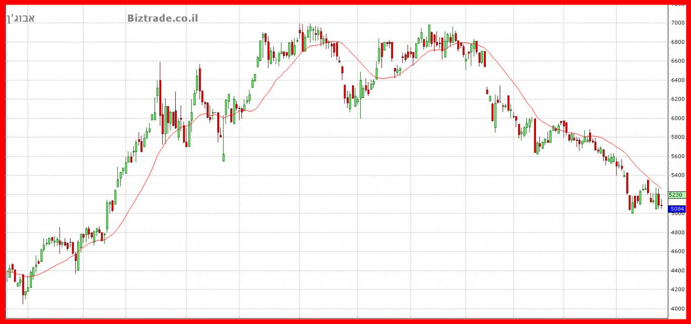 המחיר נסחר בלחץ קו ה 5000 , גם אתמול וגם היום כאשר הוא עומד כרגע על ה 5002 !