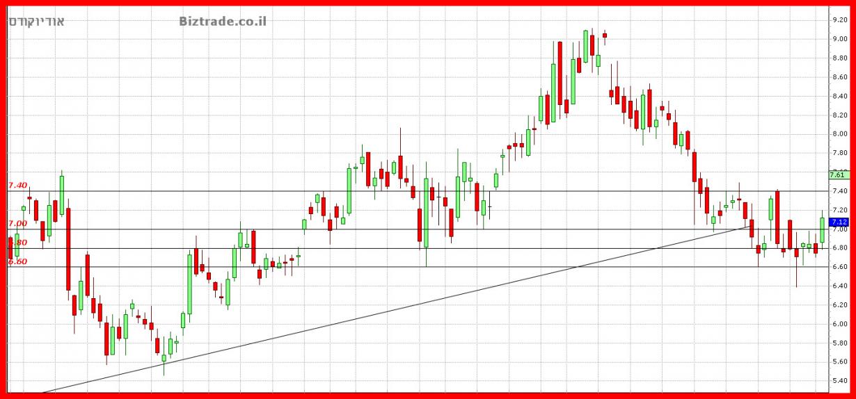 הקונים מראים אתמול את נחישותם וכבר פרצו את קו ה 7$ , מה שנותן יעד טכני מיידי ל 7.4$,