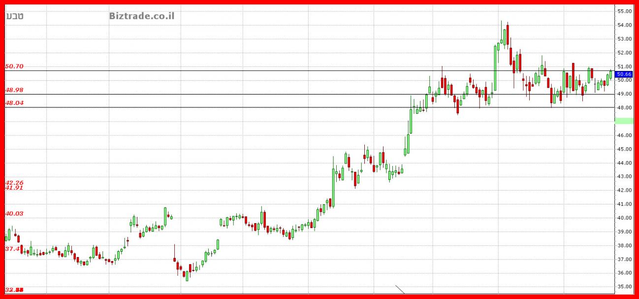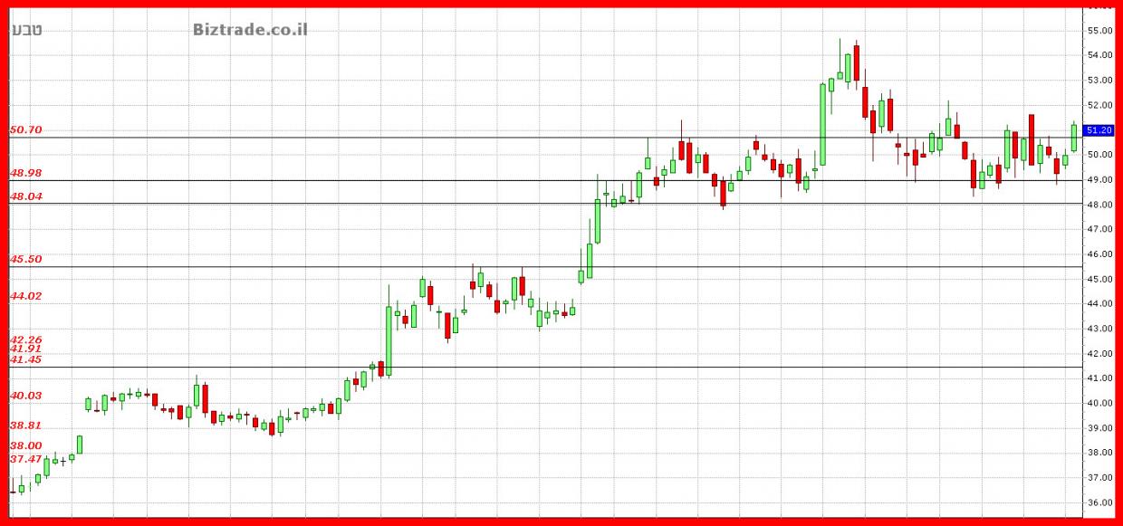 המחיר מצליח אתמול לפרוץ את ה 50.7$. כאשר פריצה זו חשובה להמשך עליות , שבהחלט יתכן שנקבל אותם כבר היום.