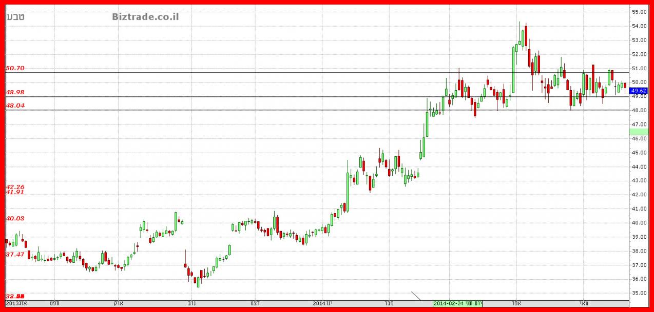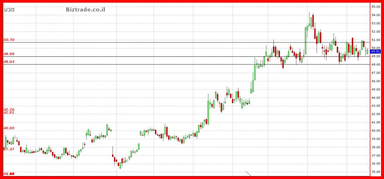 המחיר מדשדש בטווח צר שבין , 49$ -- 50.7$, ורק פריצה או שבירה יוכלו לתת כיוון.
