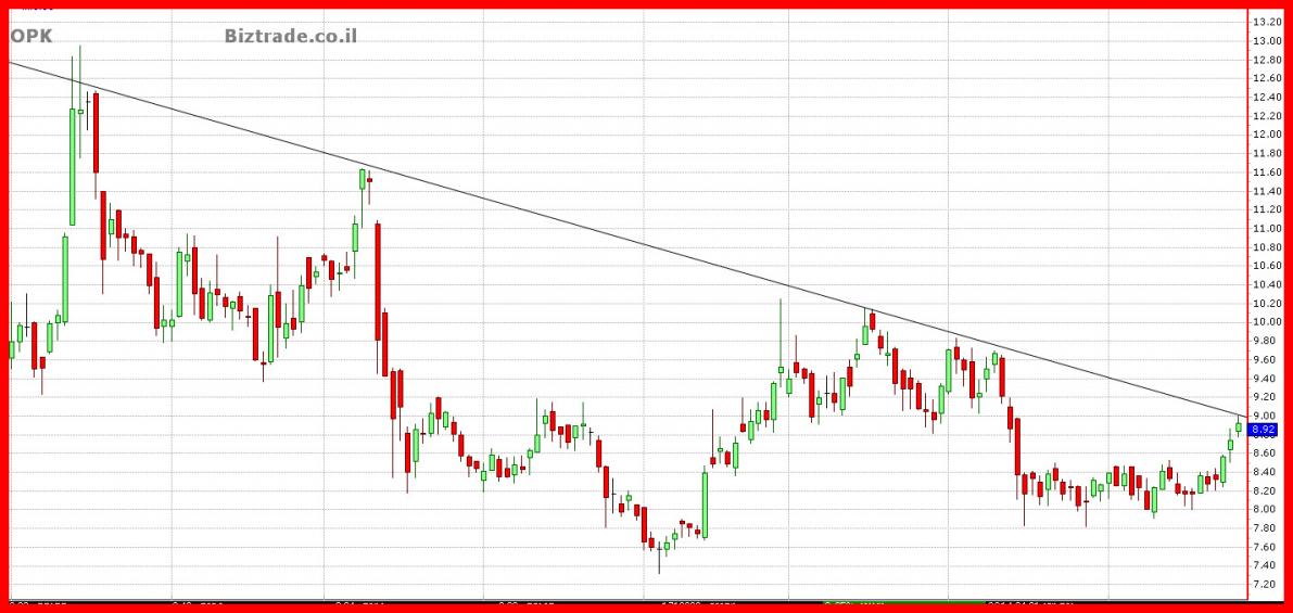 כרגע המחיר שוב מגיע לצומת אש הורידה אותו מ 10$ , ו מ 9.6$, והוא אותו קו מגמה יורד אשר מגיע כרגע ל 9$ . כך שהמשך עליות בגרף זה תלוי לחלוטין בפריצת הקו הטכני ב 9$, כאשר ....
