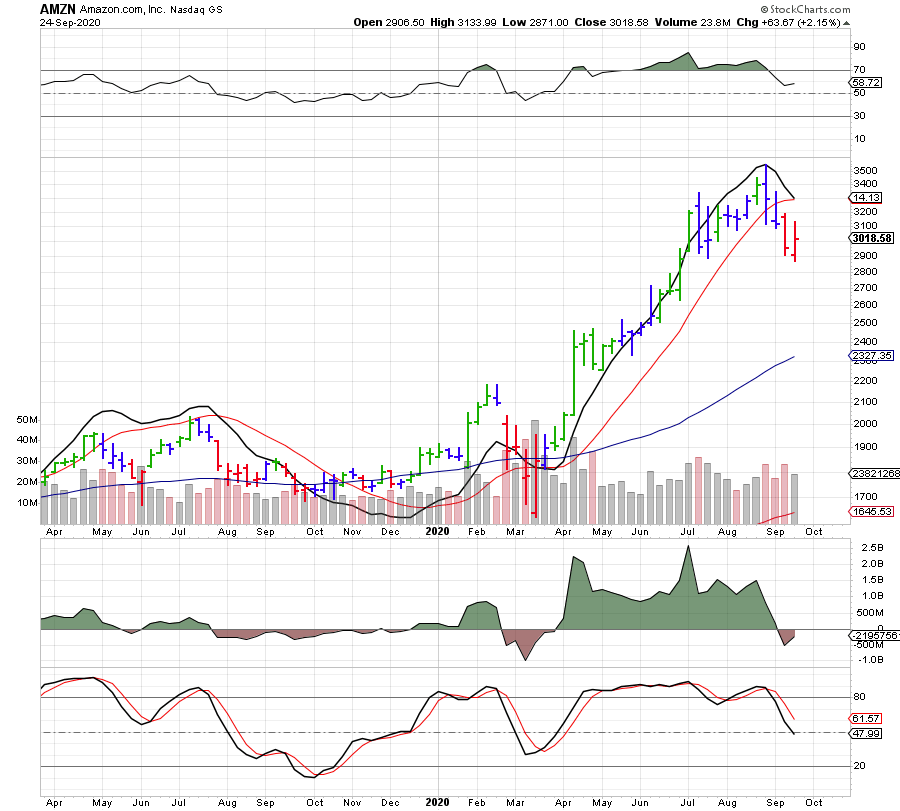הגרף השבועי מראה את המגמה השורית של הענק אמזון. קו המגמה הצומח מעלה את העמודות להיפוך ברמת מחיר מעל-3400 דולר. ברמה היומית התנועה שורט. ה-RSI בכוון שורט והסטוקסטי בעצמה גדלה. מתחת ל-2900 דולר קיימת תמיכה שנבחנה פעמיים. לגרף יש שאיפה מסוימת לירידה עד 2500 דולר.