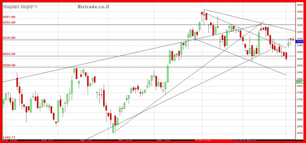 דסק"ש עדיין נסחרת ללא החלטה, כאשר האפשרות להגעה על פי הצפי השבועי ל 3200 עדיין קיימת, אבל בשביל זה היא צריכה לפרוץ את ה 3150 , כך שבכול שלב בין אם לפני או אחרי הצפי העיקרי עדיין ירידות