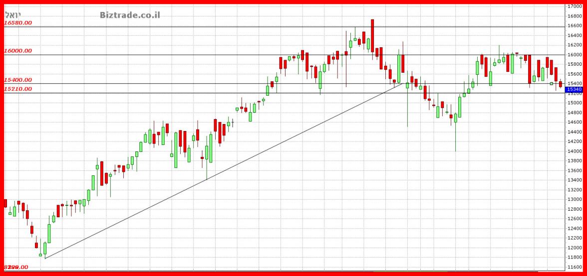 כול עוד היא לא שוברת את התמיכה הצמודה אין כאן דאגה, אבל במידה וכן הגרף יקח כיוון ל 15000 עד 14600.