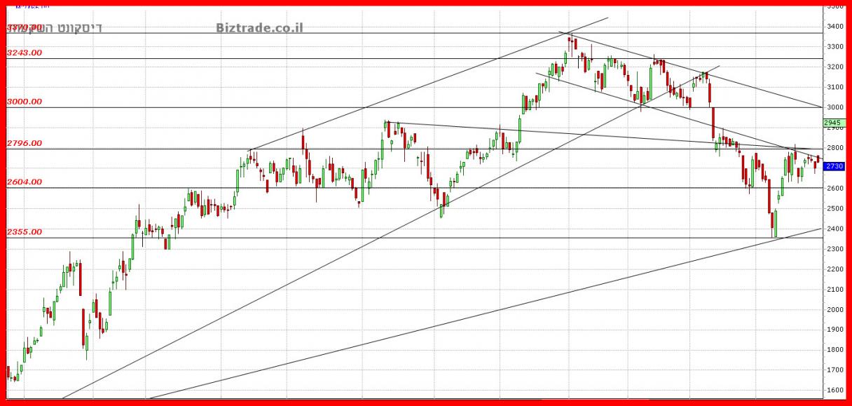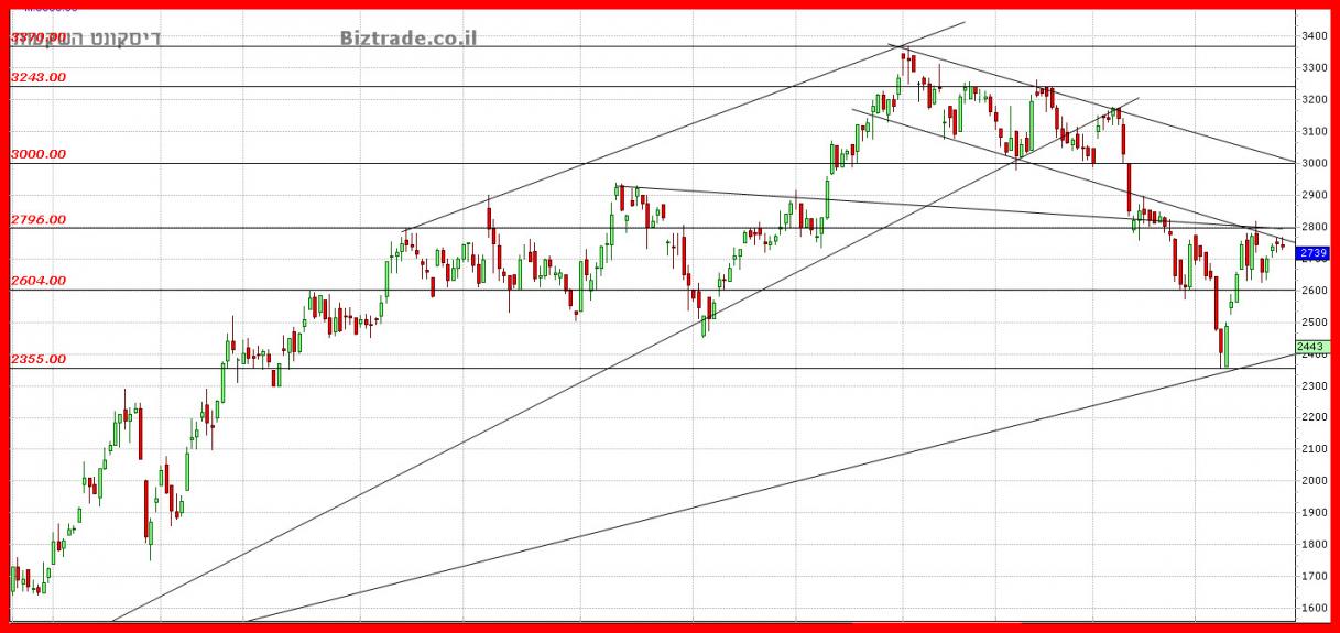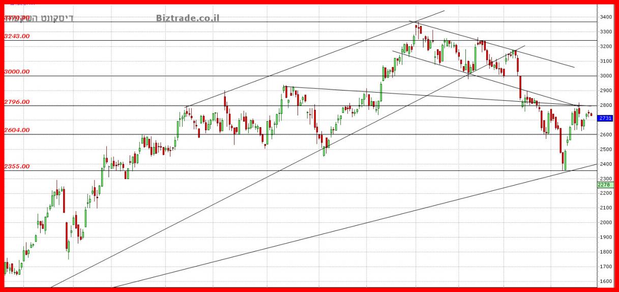 המחיר עדיין לא מצליח לפרוץ את אזור ה 2800 -- 2750 ! אזור זה הוא בעייתי מבחינה טכנית ויושבים שם קווים לא פשוטים המצוינים בגרף המצורף.