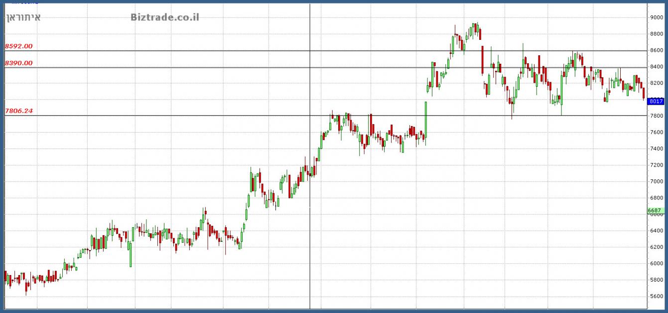 נכון שהגרף הולך ימינה אבל הליכה זו היא שלילית, ואני צופה שהמחיר ישבור את ה 8000 , ויתכן גם את ה7800.