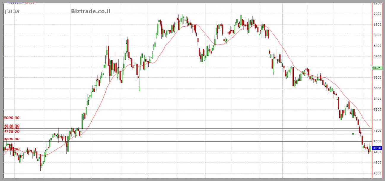 השבירה של ה 4600 ,היא דרמטית מבחינה טכנית כמו ה 5000 , או ה 5600 , כך שכול עוד המחיר מתנהל מתחת ל 4600 רמת הסיכון עולה ועולה.