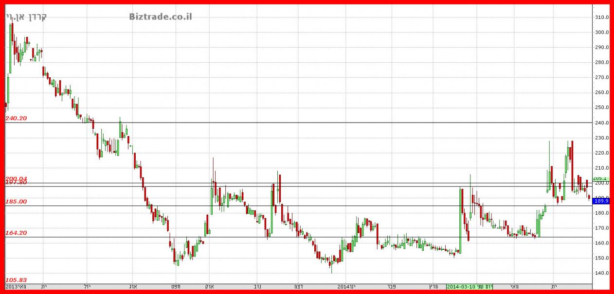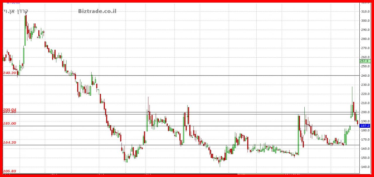 למרות ניסיון הפריצה הנוסף אתמול המחיר נדחה והיום , שוב למרות הפתיחה בגפ מעלה מעל ה 210 , היו בו רק מוכרים,, ויחד עם זאת ועם כול המוכרים של היום המחיר כן סוגר מעל ה 198!.