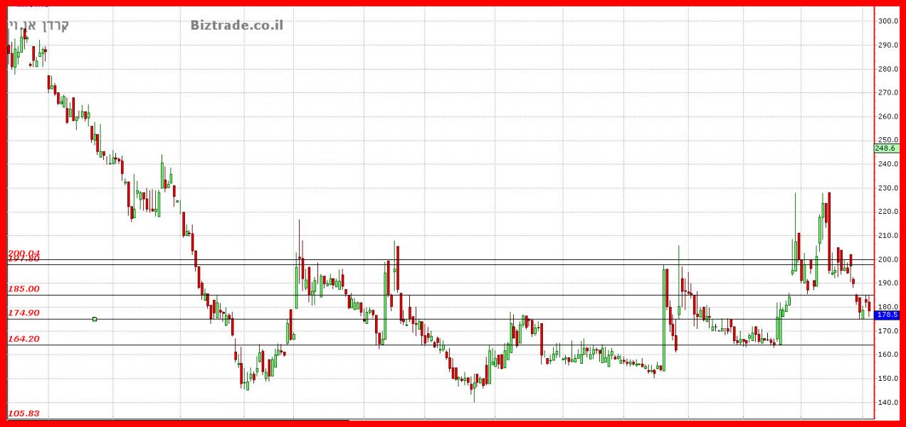 החשוב ביותר שקרה בגרף הוא שמירה על קו ה 175, כך שלא משנה שהוא לא עלה המחיר אלא מאוד משנה שהוא לא שבר תמיכה חשובה , ולמעשה לא עשה שום תנועה חריגה ונשאר בטווח דשדוש שבין 175 -- 185.