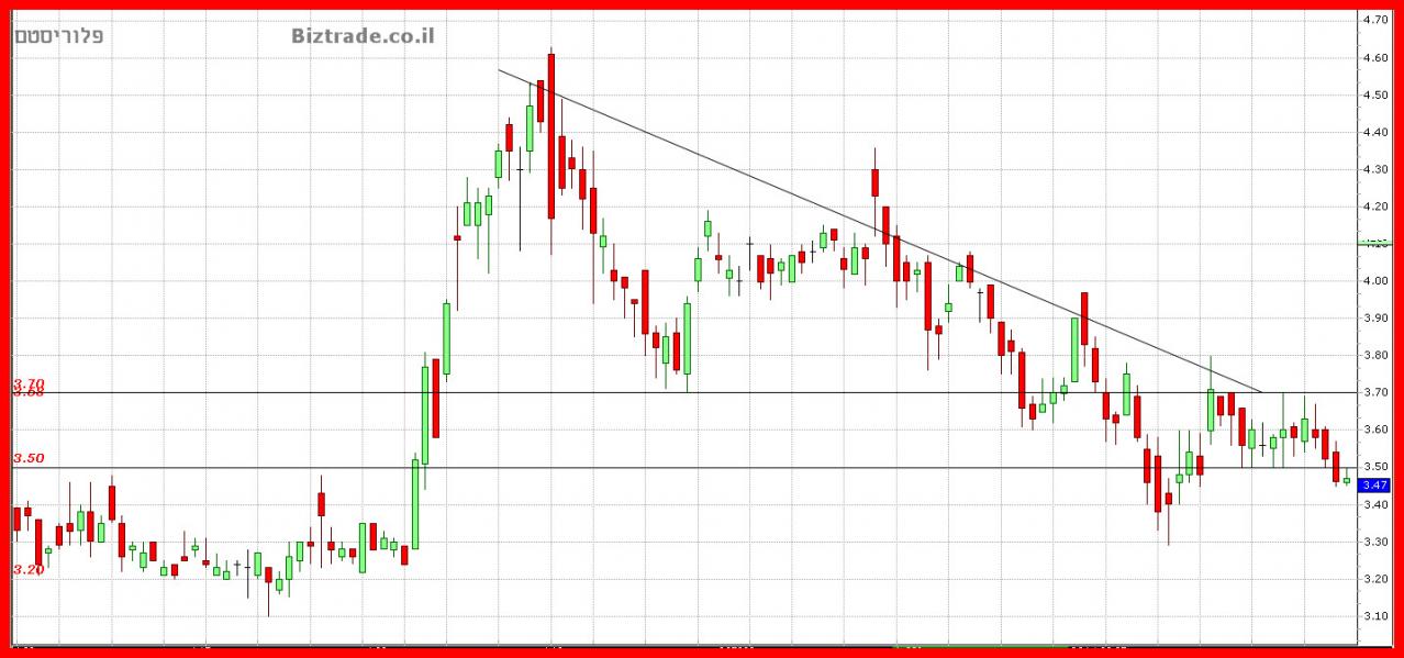 המחיר שובר את הטווח התחתון אשר ב 3.5$ כבר שלשום ואתמול הוא בודק את הקו כ התנגדות,