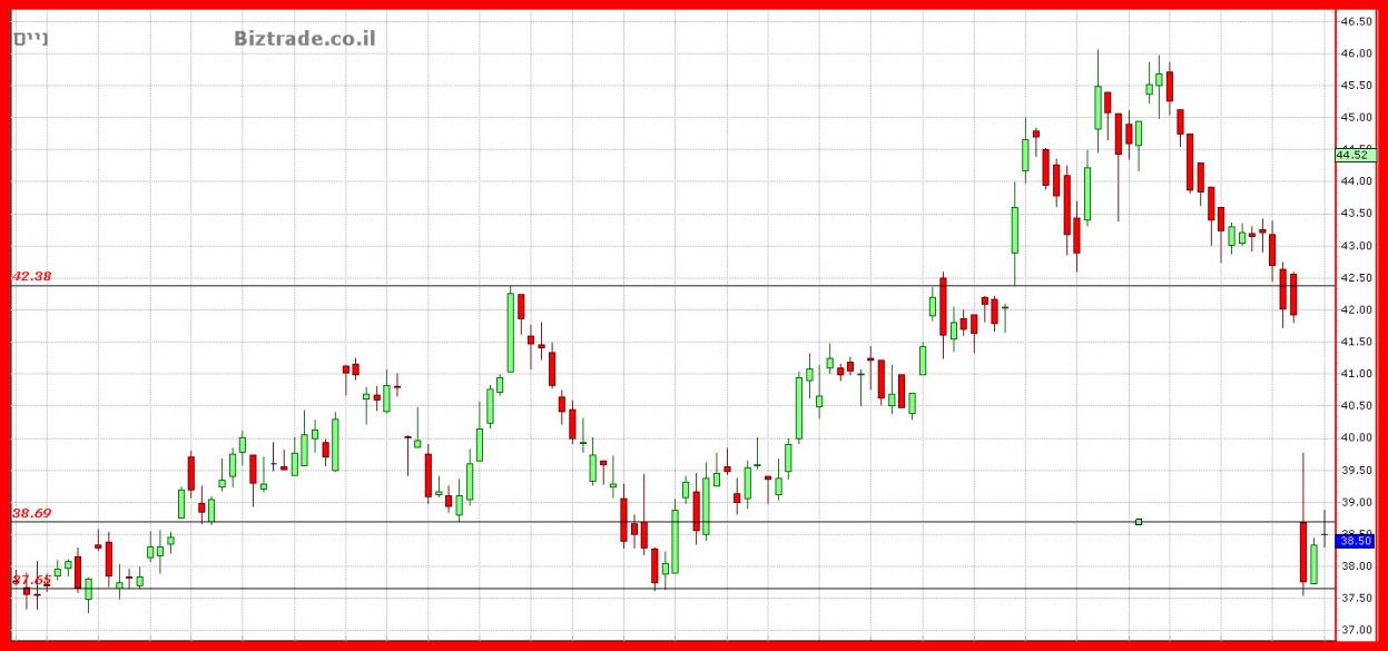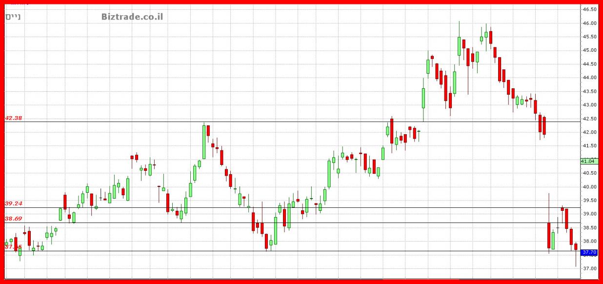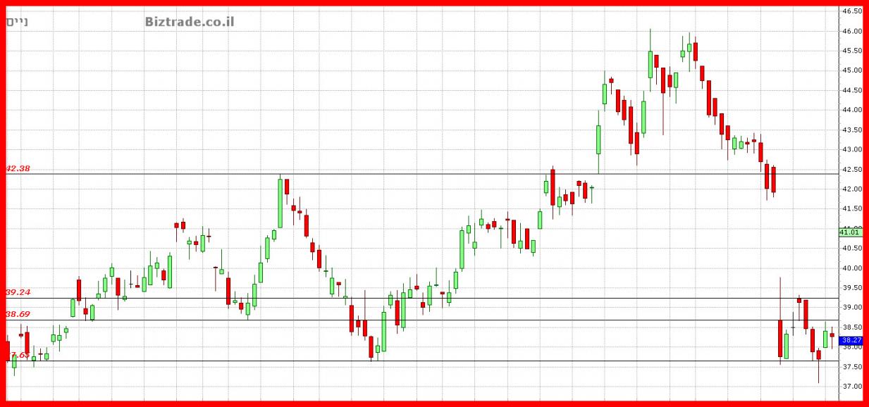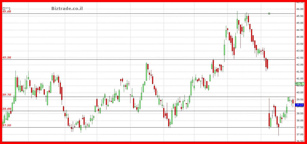 מאז הירידות החדות , המחיר תקוע בטווחים שבין, 37.6$ -- 38.7$ , כאשר רק פריצה או שבירה של האזור יוכל לתת כיוון חדש.