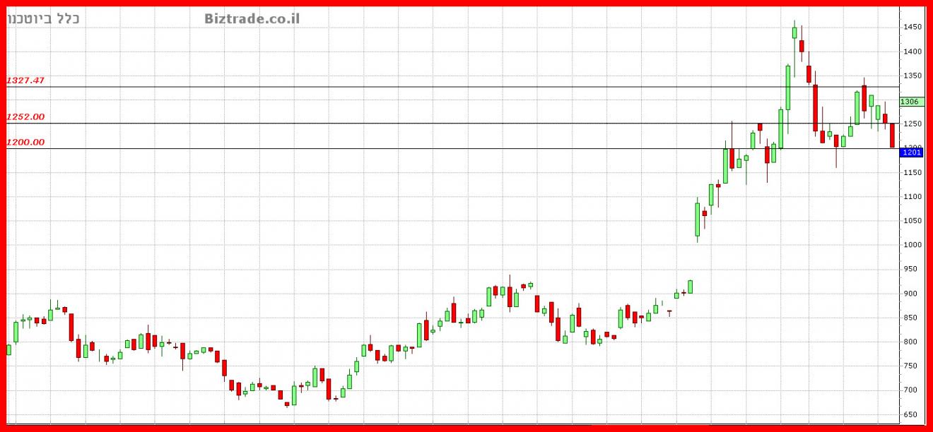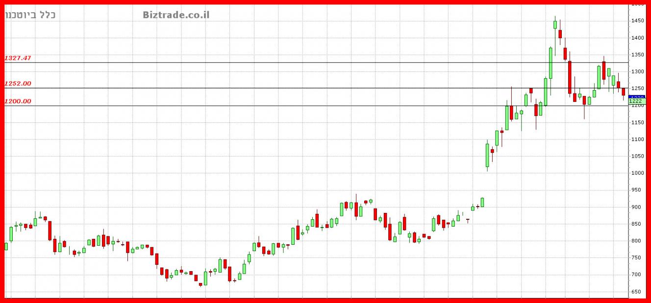 כול שבירה של ה 1200 , יחשב כחולשה רבה , ויוכל להוביל את המחיר ל 1100 -- 1150 .