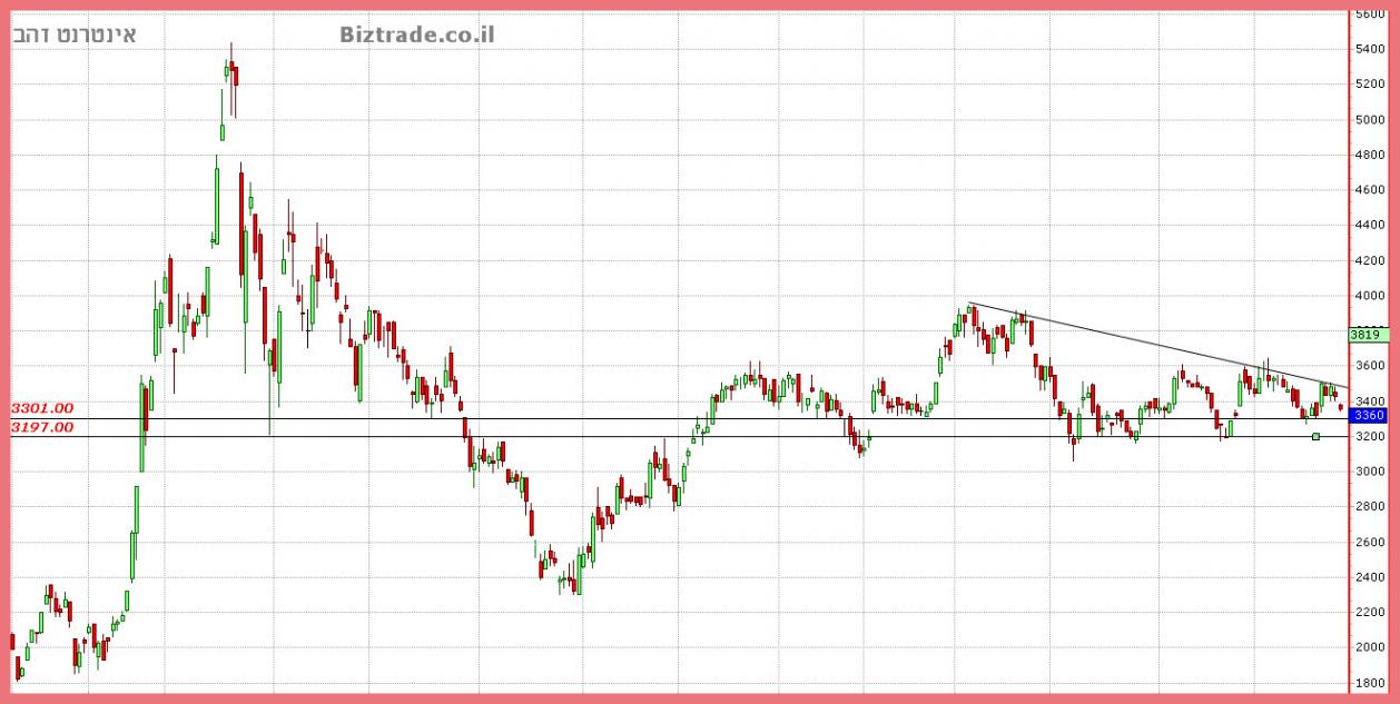 המחיר ממשיך לשהות במקומות מסוכנים , בין הקווים העיקריים ו ללא החלטה ברורה על כיוון, על כן סכנת שבירת ה 3200 קיימת כול הזמן כול עוד המחיר לא פורץ את ה 3600.