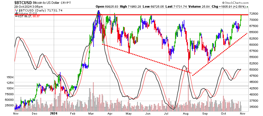 התחזיות לאחר בחירתו של טראמפ חיוביות ביותר. לפי ג'וף קנדריק, ראש תחום מחקר הקריפטו בבנק Standard Chartered, ניצחון של דונלד טראמפ עשוי להעלות את מחיר הביטקוין ל־125 אלף דולר - כמעט כפול מערכו הנוכחי. תחזיות אחרות צופות התנהלות רגועה יותר של המטבע, כך ששוויו אמנם ימשיך לגדול אך יגיע ל־6 ספרות רק בשנה הבאה. יש כמובן תחזיות אופטימיות אף יותר, הצופות הגעה ל־200 אלף דולר בשנה הבאה.