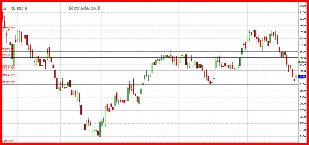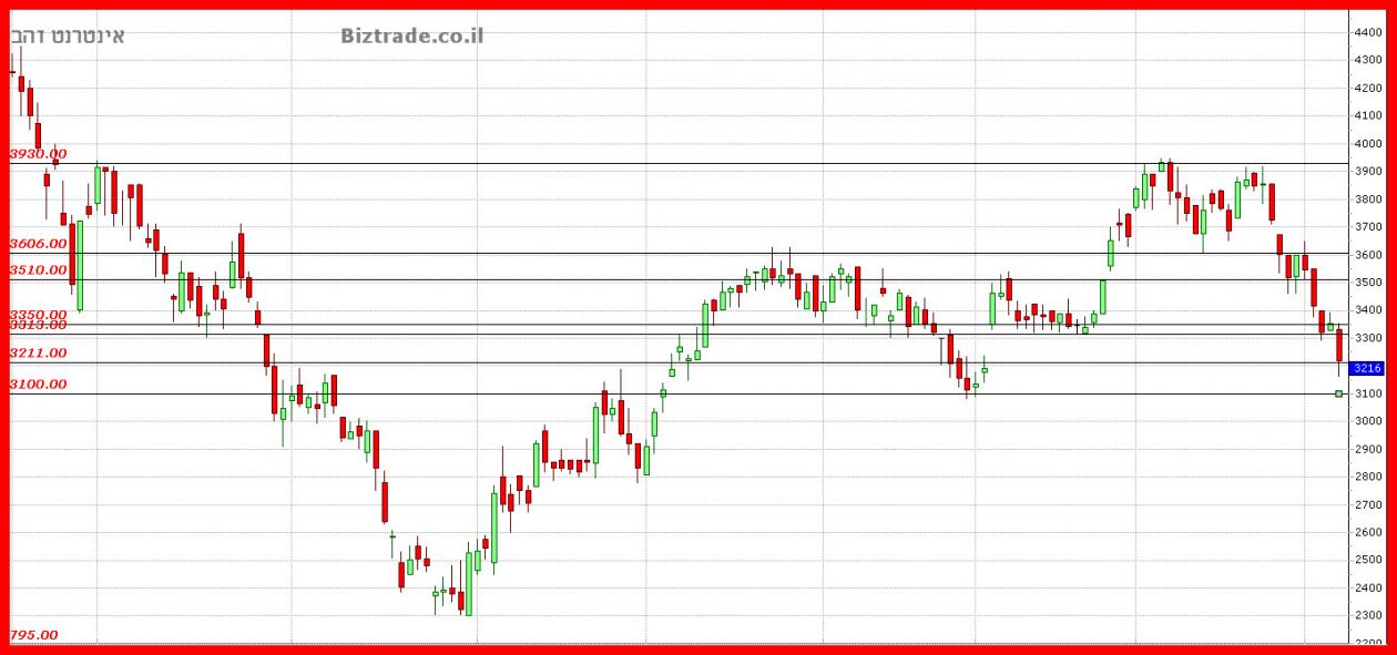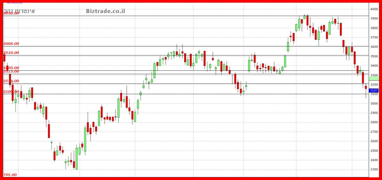 הגרף היומי יחד עם השבועי כבר קרובים לעצירת הירידות, אז , למרות ששבירת תעלה הוא צעד טכני שלילי, המחיר לא צפוי ללכת רחוק , כאשר המשך הירידות יכולות להיות כרגע עד ה 2700 , ולא יותר בשלב זה, ומשם לצאת למהלך עולה..