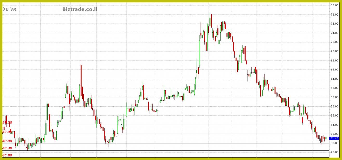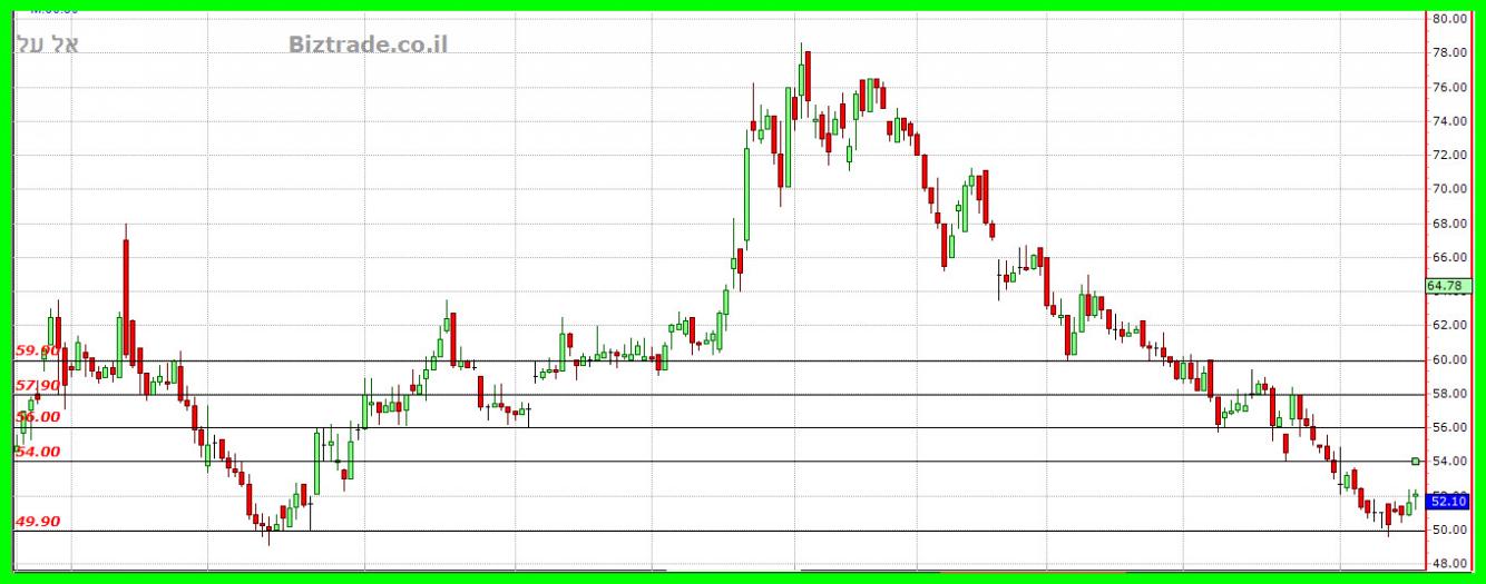 המחיר מצליח לסגור היום מעל ה 52, ובכך הגרף מקל יעד טכני ל 54.