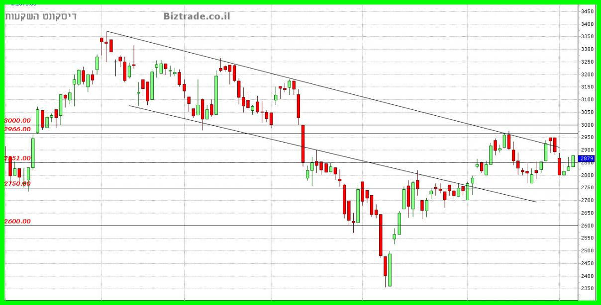 אין חוכמות, הגרף עדיין חיובי ! , לא הצליח לפרוץ א ה 2950 , ירד ל 2800 , ושוב נשאר חיובי, כאשר הטווח השבועי לרגע לא עבר לשלילי ועדיין בתחום הטוב להמשך עליות.