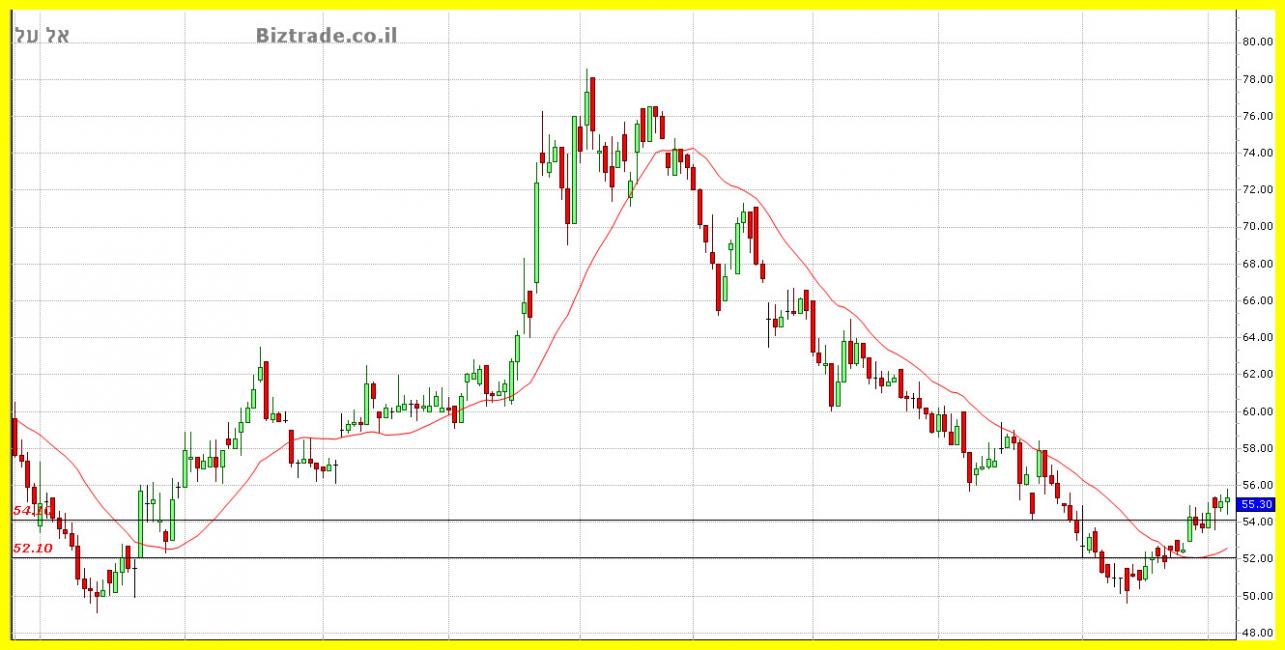 כאשר כבר מה 50 -52 , הגרף הזה כבר הומלץ כאן. ובכדי להשלים את התמונה , נדרשת פריצה של ה 56 ואז שחרור קפיץ מעלה יתרחש, אבל בלי פריצה זו , המחיר יגיע עד כאן.