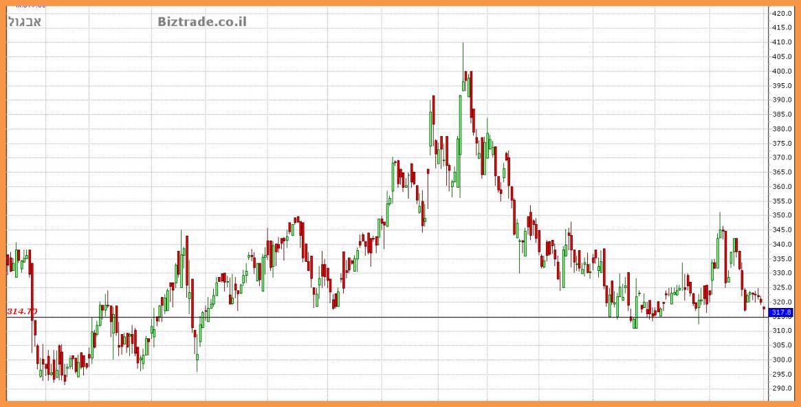 אומנם הקונים נכנסו בקטנה אבל אין ביטחון מלא שקו זה יחזיק גם היום ובמידה והוא ישבר תיתכן גם ירידה מה 300.
