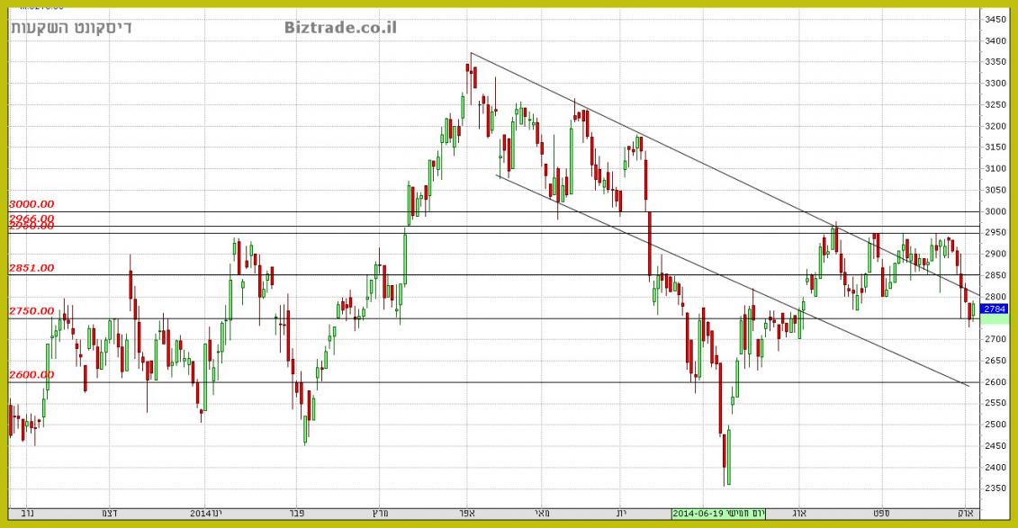 המחיר חודר מטה את התעלה היורדת , ומגיע ליעד שנכתב ב 2750