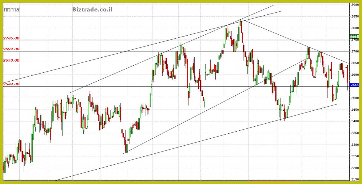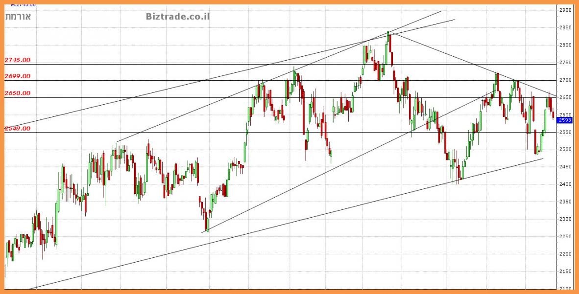 המתנה מעל ה 2550 = הליכה מעלה נוספת לקו המגמה היורד ב 2650.