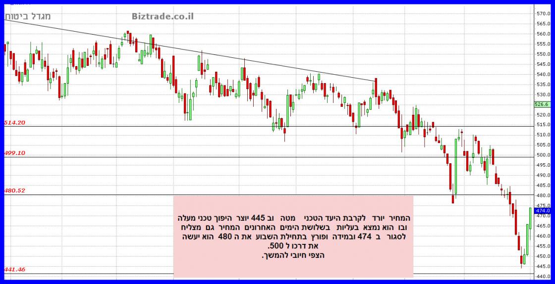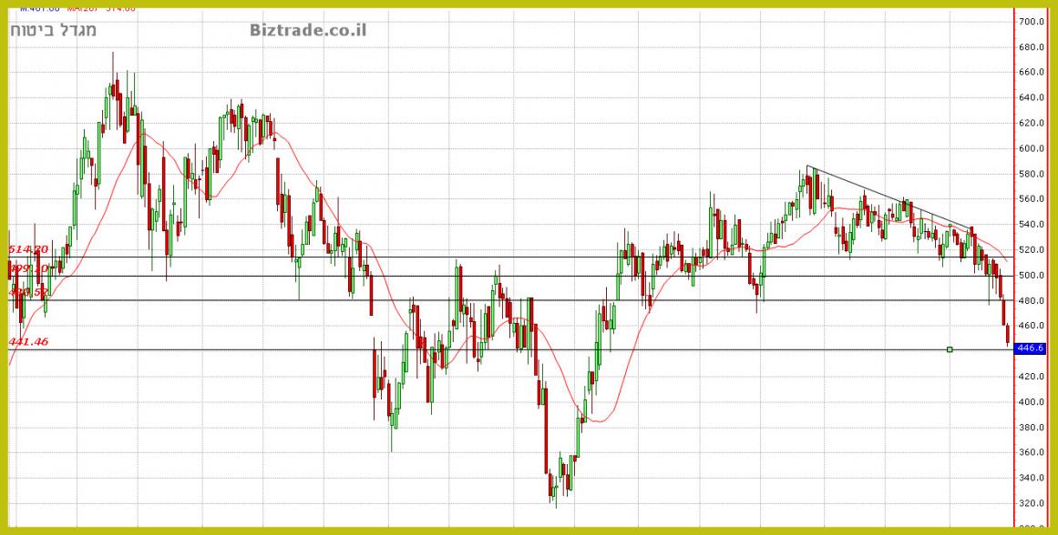 התמיכה הטובה באזור שיכולה לזמן קונים רבים נמצאת ב 440 , על כן יש לקחת בחשבון שהמחיר עדיין לא נגע בה ], ו ירידות נוספות לפחות עד עליו , צפויות מחר.